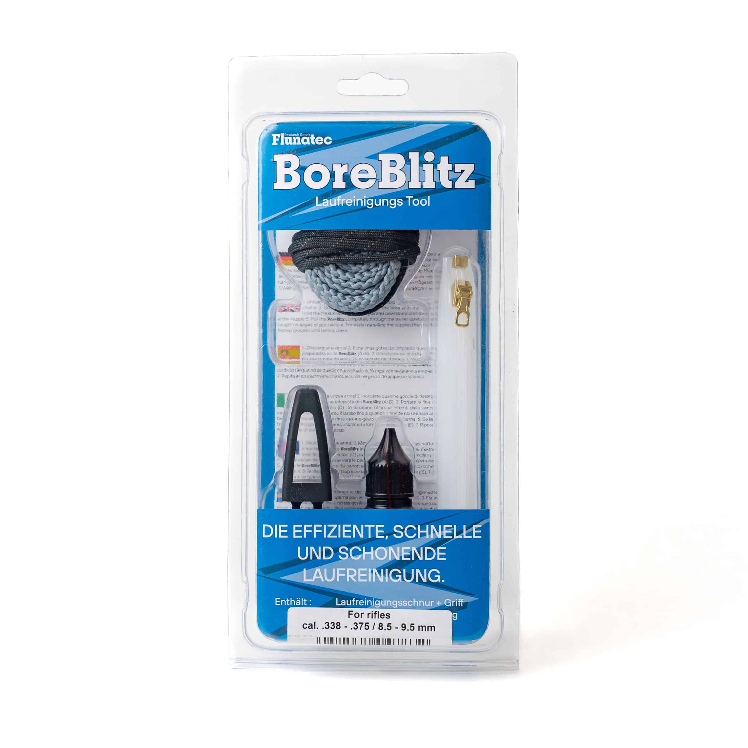 Το καθαριστικό κάννης BoreBlitz για τουφέκια διαμετρήματος .338-.375 (8,5 mm – 9,5 mm) είναι η ιδανική λύση για τον αποτελεσματικό, φιλικό προς την κάννη καθαρισμό κυνηγετικών και αθλητικών τουφεκιών μεγάλου διαμετρήματος. Με το ενσωματωμένο σύστημα δύο θαλάμων, το BoreBlitz καθαρίζει και στεγνώνει με μία μόνο κίνηση – χωρίς πρόσθετα εργαλεία. Το εύκαμπτο νάιλον κορδόνι και τα επακριβώς βαθμονομημένα στοιχεία καθαρισμού προσαρμόζονται τέλεια στην κάννη και απομακρύνουν αξιόπιστα τη βρωμιά, τα υπολείμματα μπαρουτιού και το λάδι χωρίς να καταστρέφουν την εσωτερική επιφάνεια.