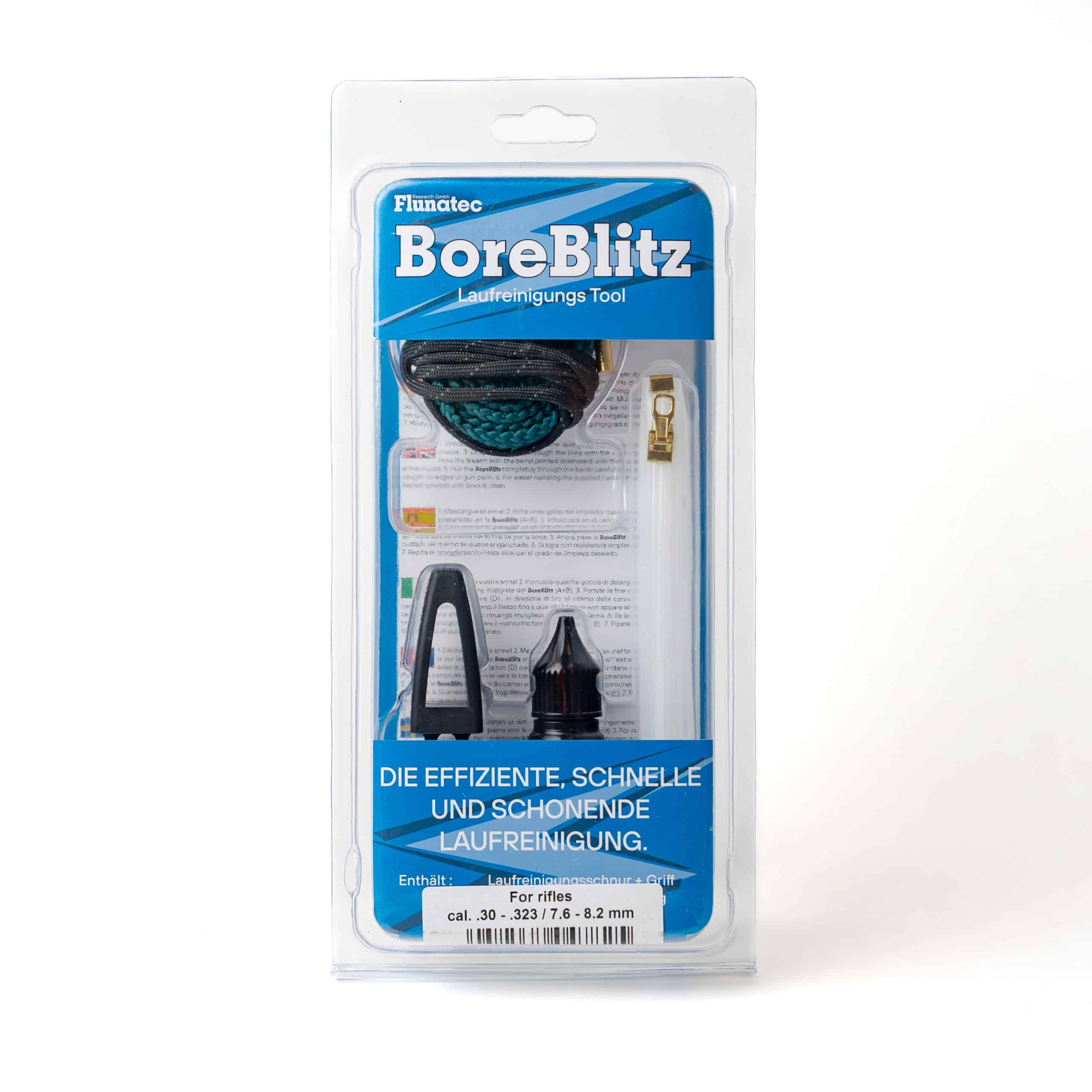 Το καθαριστικό κάννης BoreBlitz για τυφέκια διαμετρήματος .30-.323 (7,62 mm – 8,2 mm) είναι η ιδανική λύση για γρήγορο, σχολαστικό και φιλικό προς την κάννη καθαρισμό κυνηγετικών και αθλητικών τυφεκίων μεγάλου διαμετρήματος. Το ενσωματωμένο σύστημα δύο θαλάμων καθαρίζει και στεγνώνει την κάννη με ένα μόνο πέρασμα – χωρίς πρόσθετα εργαλεία. Το εύκαμπτο νάιλον κορδόνι με το συντονισμένο σώμα καθαρισμού προσαρμόζεται τέλεια στην κάννη και απομακρύνει αξιόπιστα υπολείμματα μπαρουτιού, ρύπους και λάδια χωρίς να καταστρέφει την επιφάνεια της κάννης. Για μέγιστη απόδοση με ελάχιστη προσπάθεια.