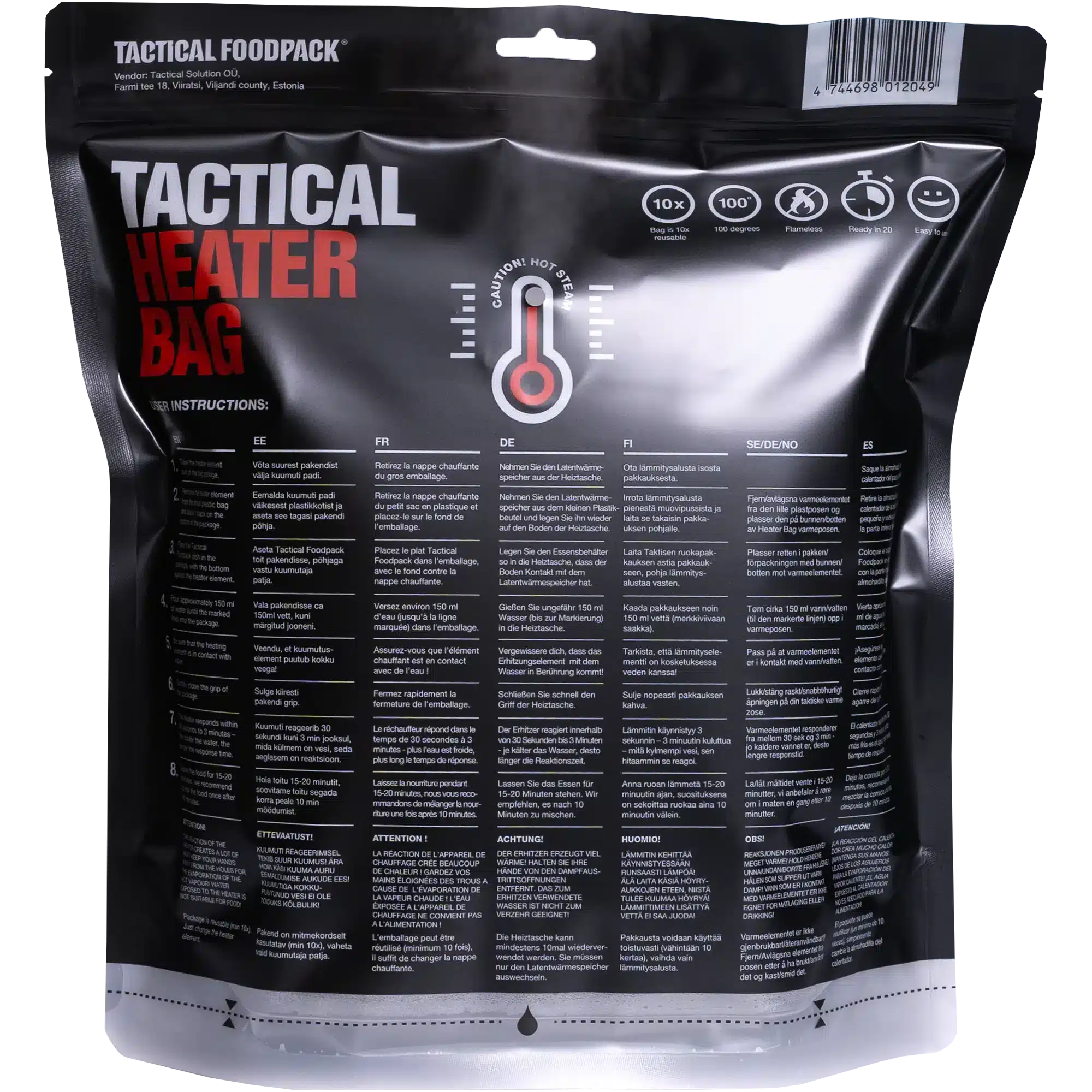 Σε περιπτώσεις όπου δεν είναι δυνατό να βράσει νερό ή να ανάψει φωτιά. Εδώ μπορείτε να χρησιμοποιήσετε την τακτική τσάντα θέρμανσης. Προσθέστε περίπου 150 ml νερού και ο θερμαντήρας λειτουργεί για έως και 25 λεπτά, η θερμοκρασία του θερμαντήρα ανεβαίνει στους 100 βαθμούς Κελσίου!