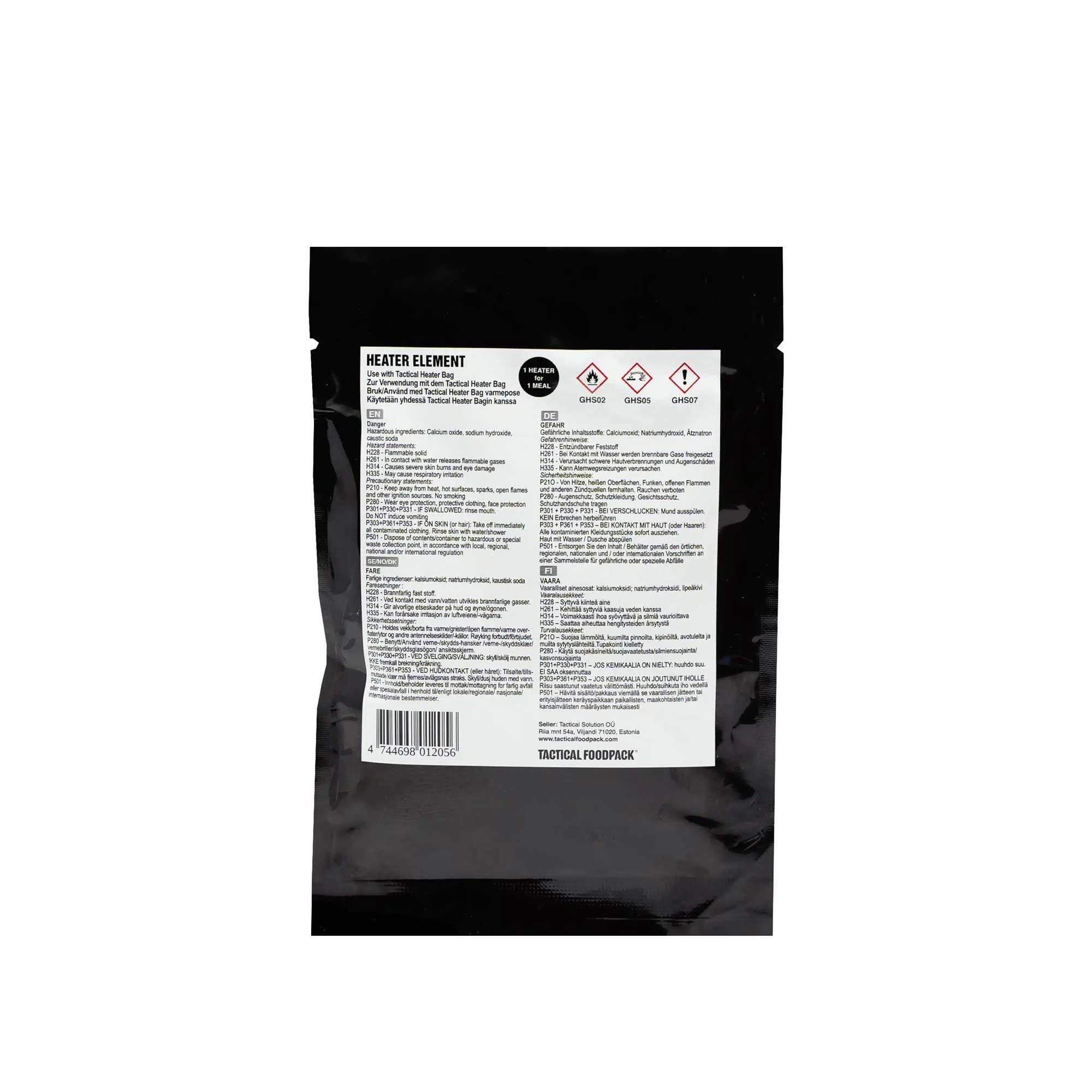 In Situationen, wo wasserkochen oder das Anzünden eines Feuers nicht möglich ist. Hier kann man denTactical Heater Bag nutzen. Etwa 150 ml Wasser dazugeben und der Erhitzer arbeitet bis zu 25 Min., die Temperatur des Erhitzers steigt auf 100 Grad Celsius! Paket enthält 1 Heizelement.