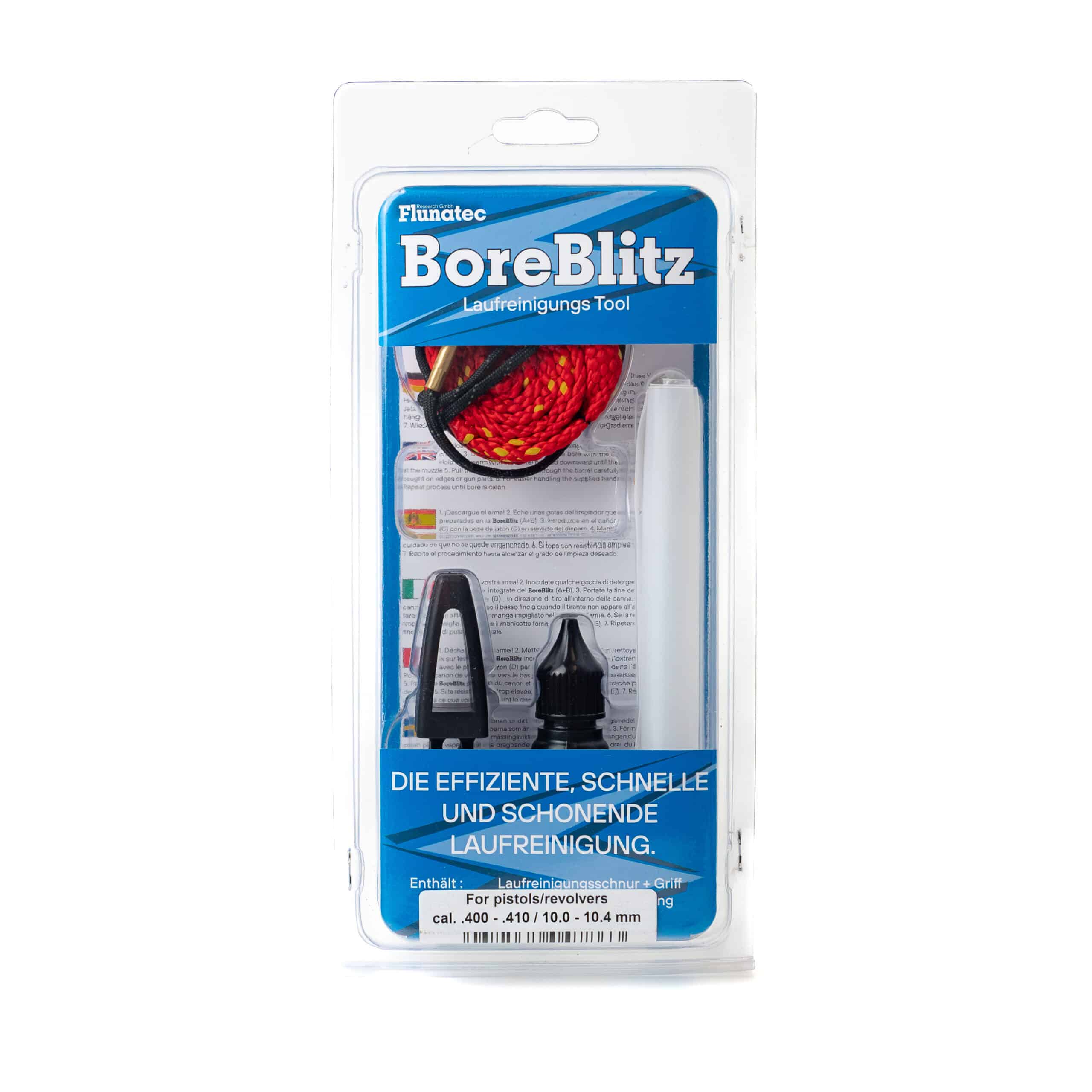 Το καθαριστικό κάννης BoreBlitz για πιστόλια διαμετρήματος .40-.41 / 10-10,4 mm έχει αναπτυχθεί ειδικά για τον γρήγορο, αποτελεσματικό και φιλικό προς την κάννη καθαρισμό των πιστόλων μεγάλου διαμετρήματος. Με το δοκιμασμένο σύστημα δύο θαλάμων, το BoreBlitz καθαρίζει και στεγνώνει την κάννη με ένα μόνο πέρασμα – ιδανικό για τακτική συντήρηση μετά από εκπαίδευση ή χρήση. Το εύκαμπτο νάιλον κορδόνι με βάρος διευκολύνει την εισαγωγή στην κάννη, ενώ τα επακριβώς προσαρμοσμένα στοιχεία καθαρισμού απομακρύνουν αξιόπιστα τα υπολείμματα χωρίς να καταστρέφουν την εσωτερική επιφάνεια.