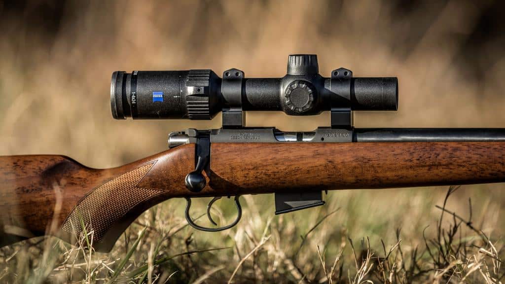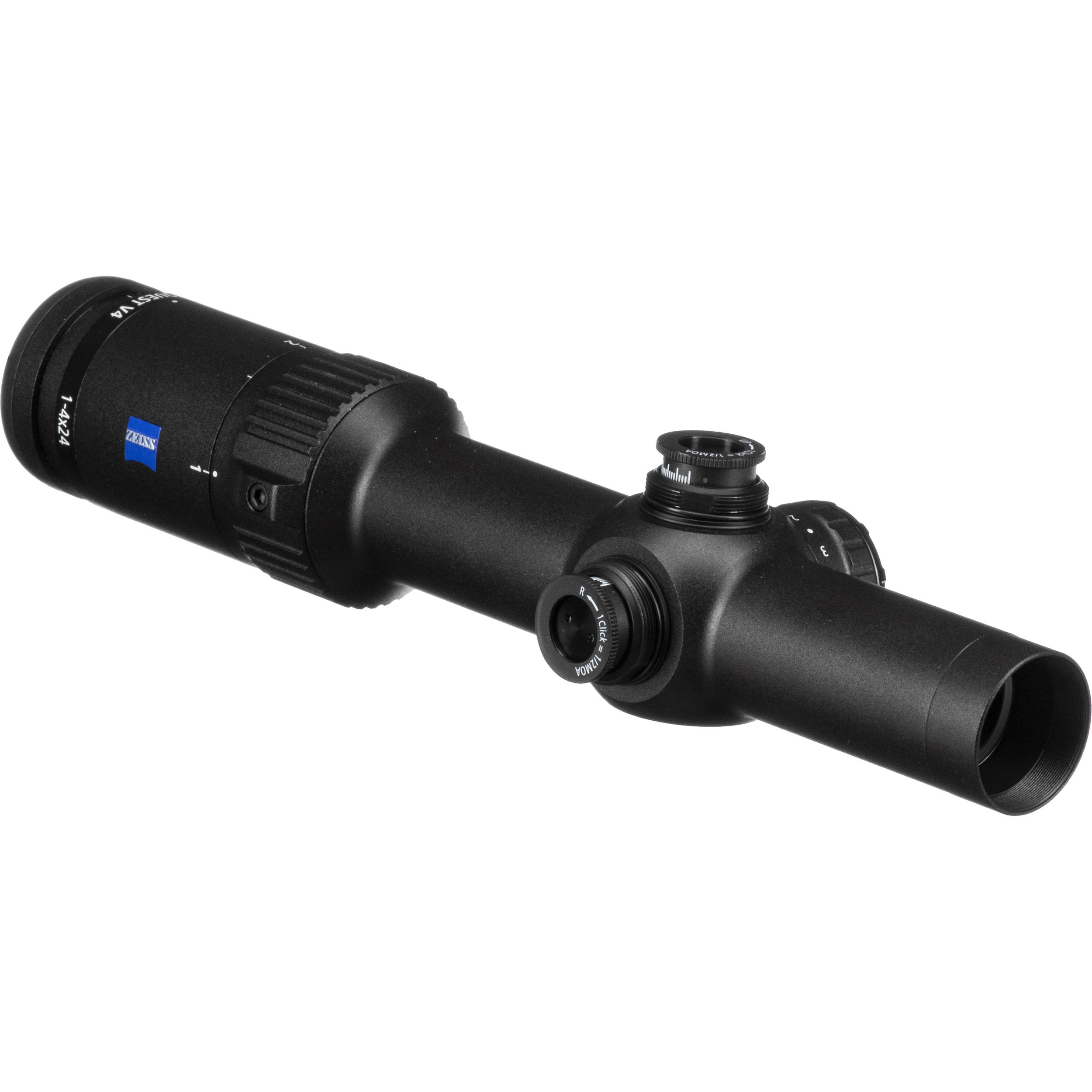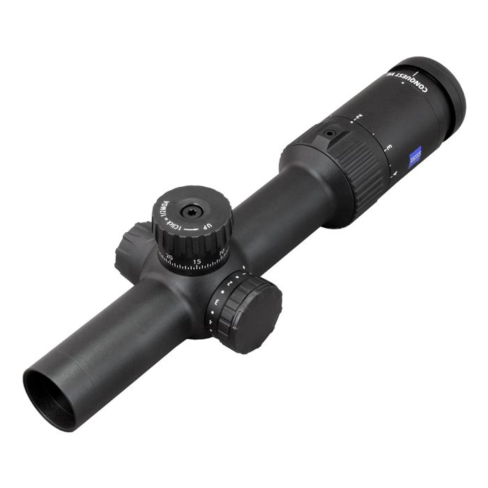The ZEISS Conquest V4 1-4ร24 is a compact riflescope with a magnification range of 1ร to 4ร and a 24 mm objective lens, which is suitable for hunting moving game as well as for tactical missions. Thanks to the parallax correction to 100 m and the Z-Plex reticle in the second image plane, the reticle remains proportional at any magnification. The 30 mm tube construction is waterproof, nitrogen-filled and fog-free, while the multi-coating provides high light transmission at twilight. With an eye relief of approx. 90 mm and a field of view of up to 36 m per 100 m (at 1ร), the Conquest enables fast aiming without losing the overview. Adjustable, lockable turrets in 1/4 MOA increments with zero-stop function allow precise reset. It fits perfectly on platforms such as AR-15 variants, bolt action rifles (e.g. Remington 700) and hunting rifles from Blaser.