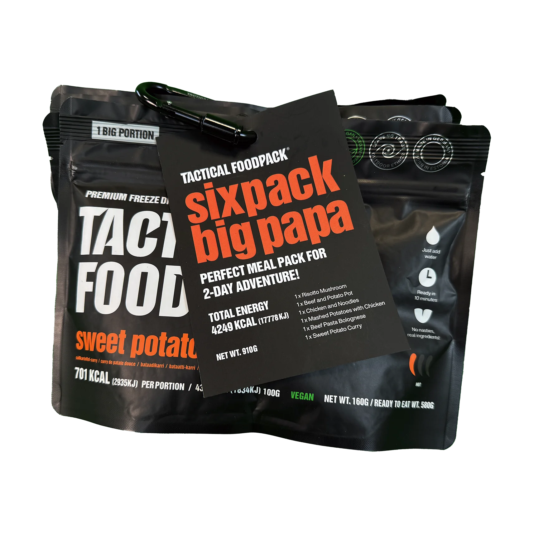 Take on any outdoor challenge with Sixpack Big Papa – the ultimate combo for those who need bigger portions and more calories. Each delicious meal provides at least 700 calories and gives you the energy you need to get through the day. With 6 different meals, you’ll enjoy variety and flavor while staying fueled for any adventure.
