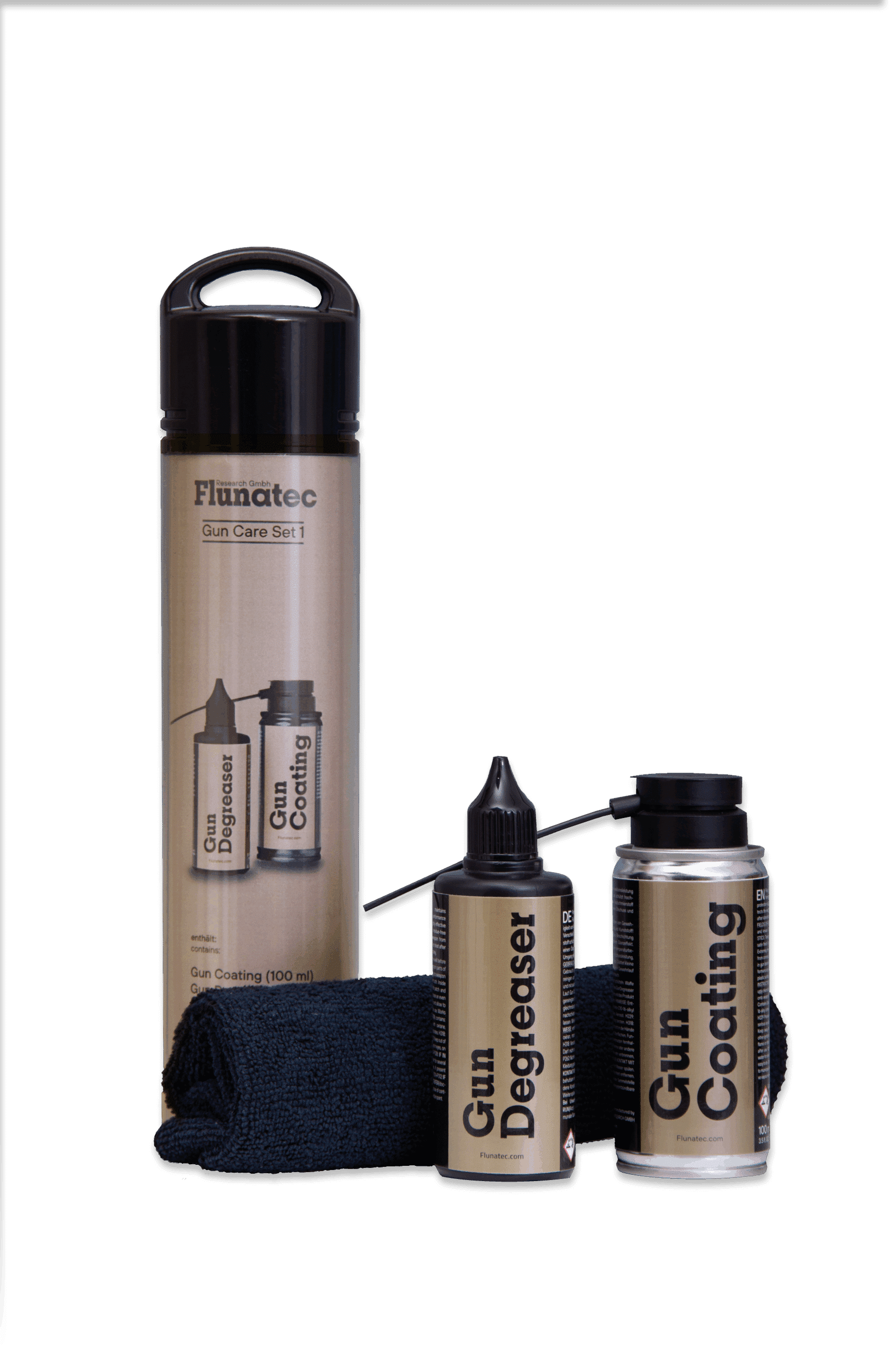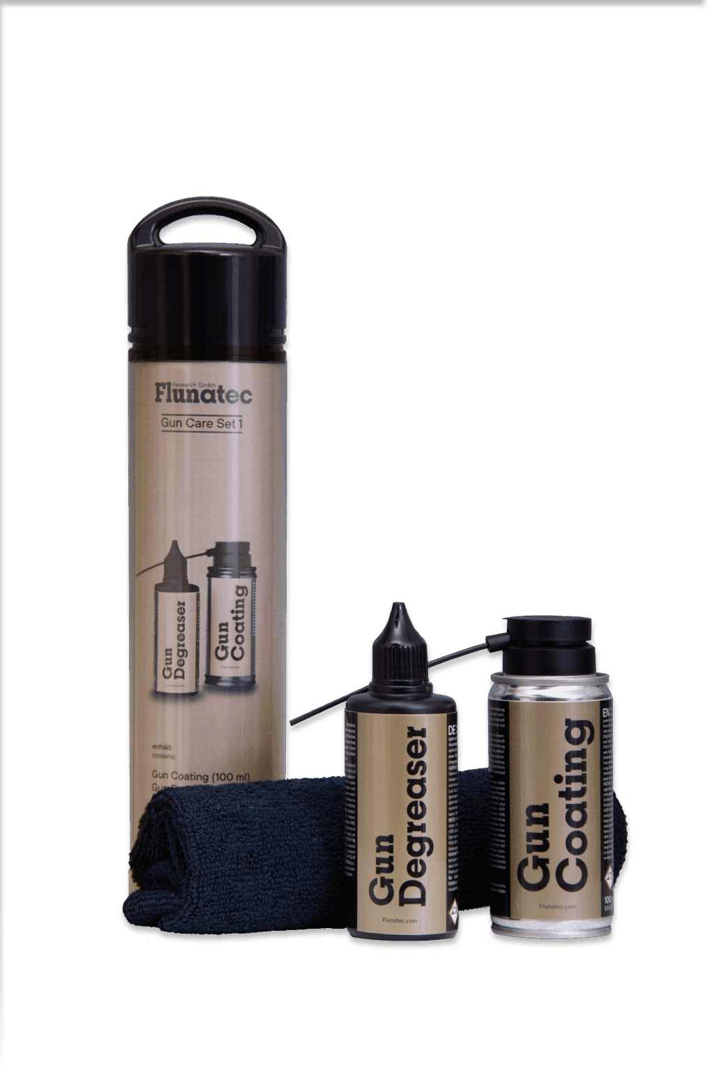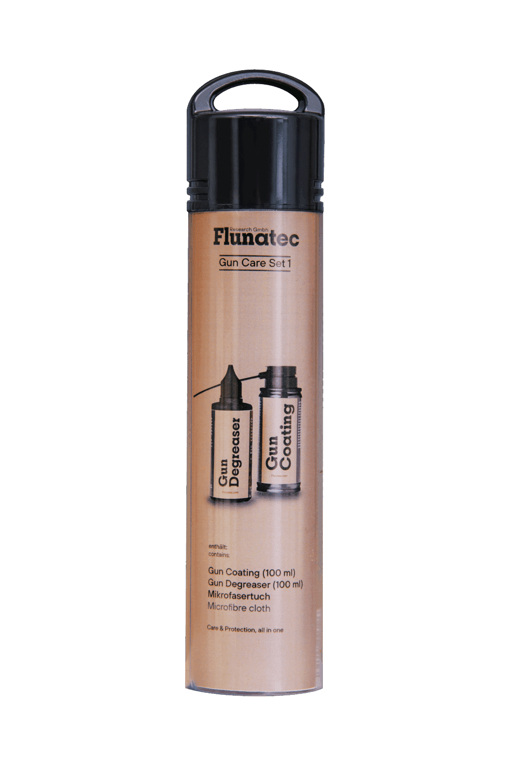 Verwenden Sie zur Waffenpflege in Zukunft die Hochleistungs-Keramikbeschichtung von Flunatec. Schusswaffen und Messer werden mit dem sparsam aufzutragenden Film geschützt; bewegliche Teile laufen dauerhaft wie geschmiert – trocken und ohne die Nachteile herkömmlichen Waffenöls.