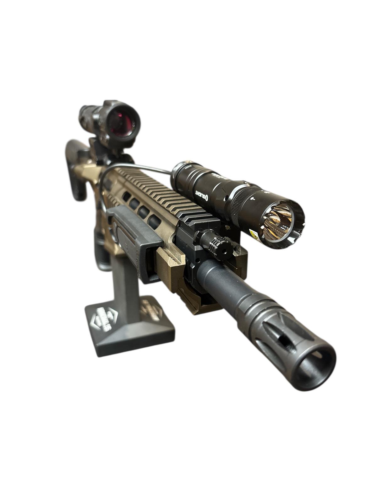 Ein besonderes Merkmal ist die Fernbedienung, die eine komfortable und taktische Lichtsteuerung erlaubt. Sie ermöglicht das Aktivieren der Lampe, ohne die Handposition zu verändern – ein klarer Vorteil in dynamischen Situationen.